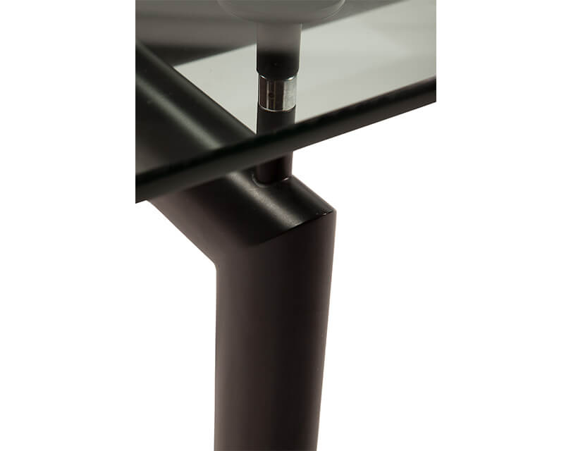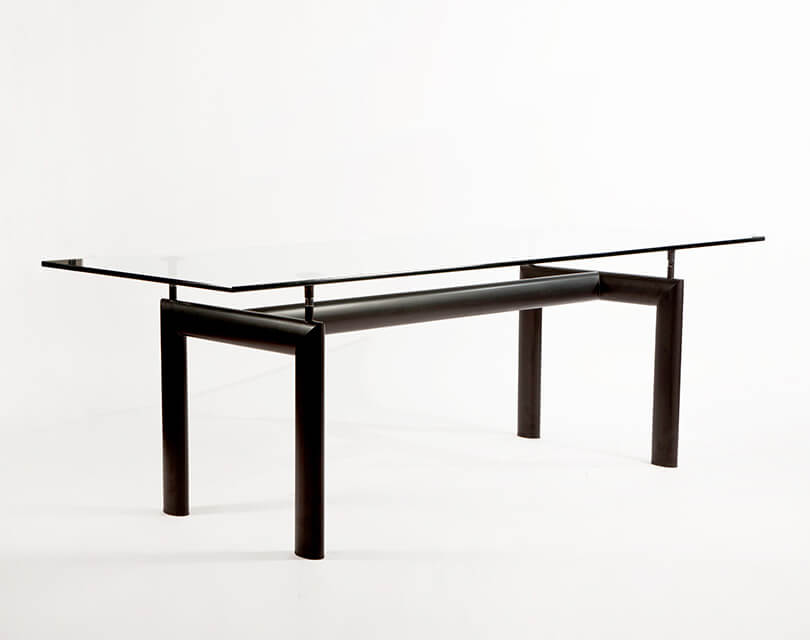 Le Corbusier's beautifully shaped table is available with a clear or sandblasted glass plate. The substructure consists of oval steel tubes.